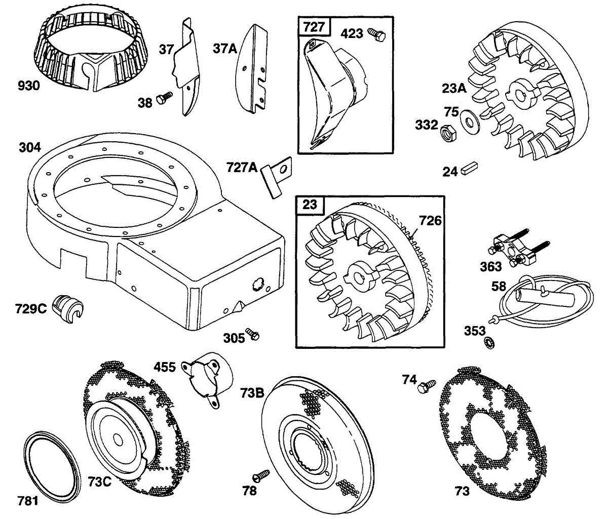Parts for Briggs & Stratton 252707-0638-01: Blower Hsg, Flywheel, Screen Parts