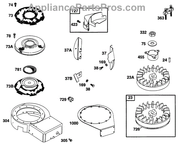 Parts for Briggs & Stratton 253702-0165-01: Blower Hsg, Flywheel, Screen Parts