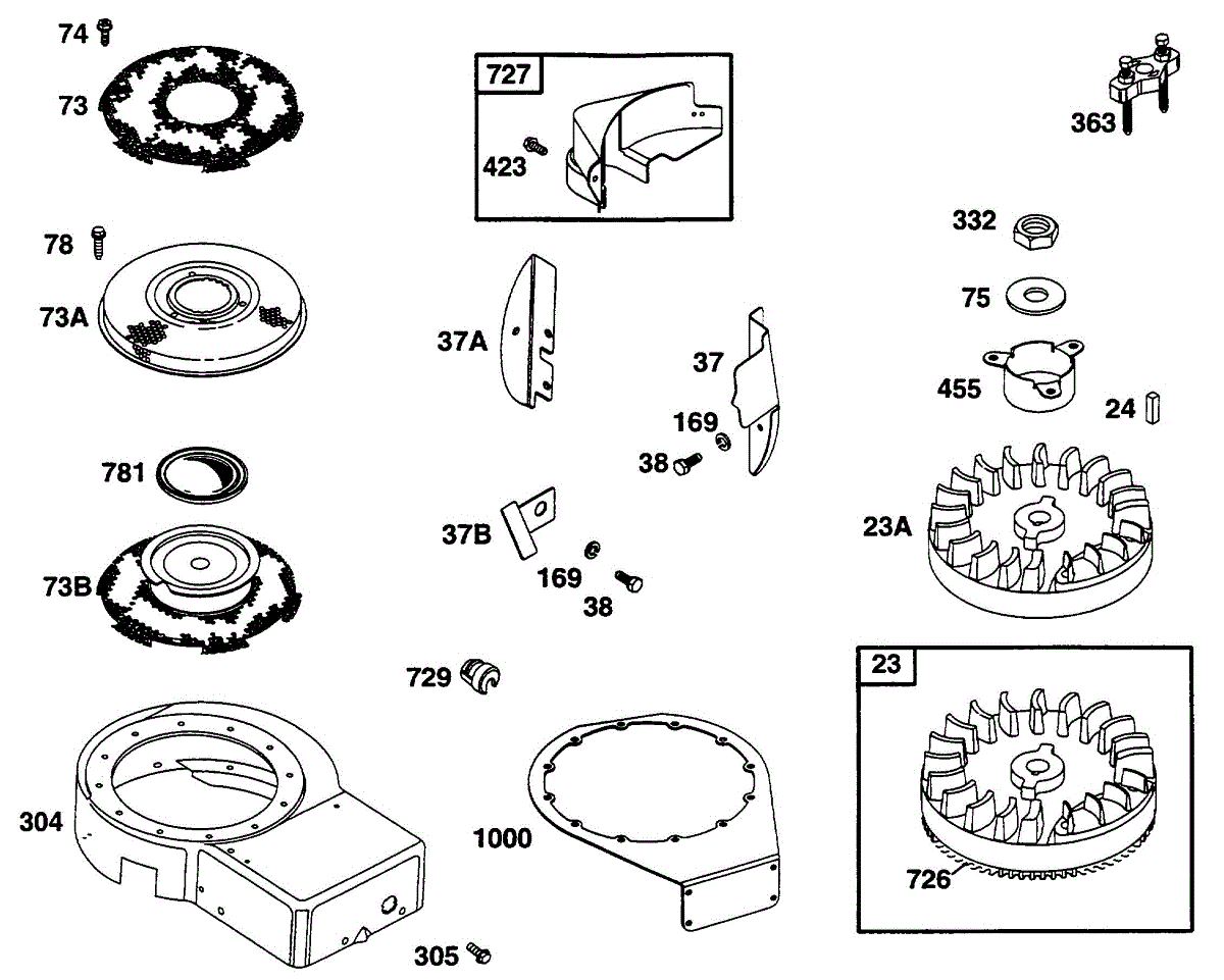 Parts for Briggs & Stratton 253707-4001-99: Blower Hsg, Flywheel, Screen Parts