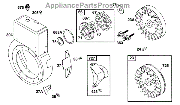 Parts for Briggs & Stratton 254427-4013-02: Blower Hsg, Flywheel Parts