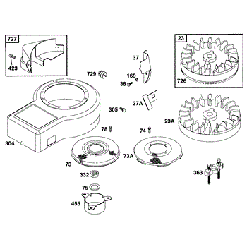 Parts for Briggs & Stratton 254707-0119-01: Blower Hsg, Flywheel, Screen Parts
