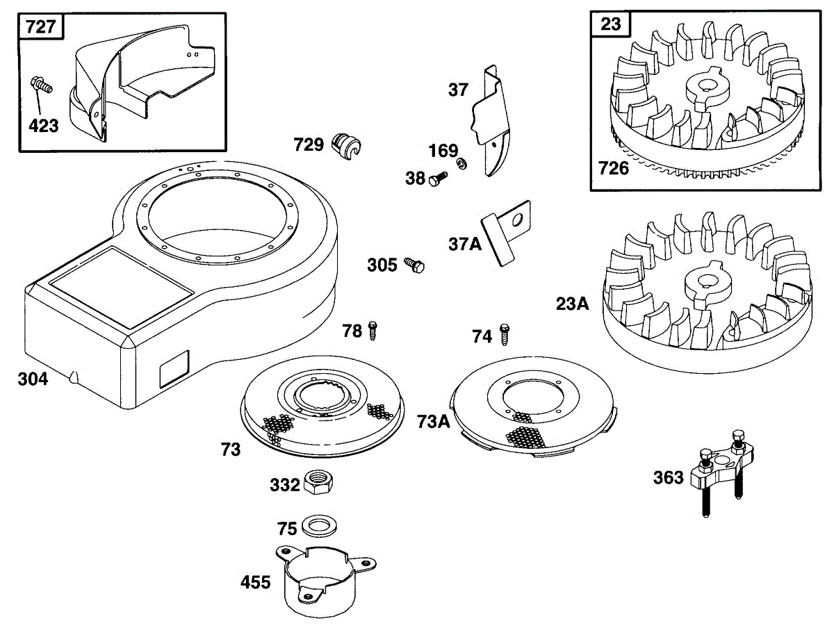 Parts for Briggs & Stratton 254707-0125-01: Blower Hsg, Flywheel, Screen Parts