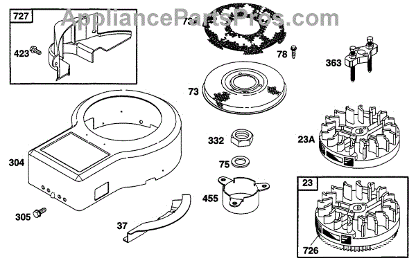 Parts for Briggs & Stratton 256707-0101-01: Blower Hsg, Flywheel, Screen Parts