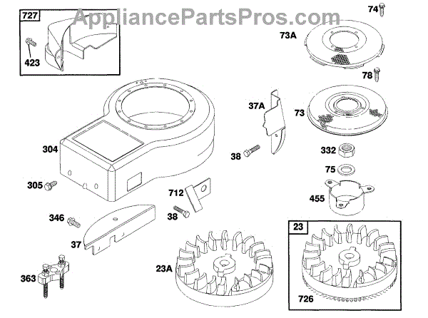 Parts for Briggs & Stratton 258707-0140-01: Blower Hsg, Flywheel,Screens Parts