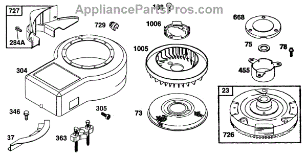 Parts for Briggs & Stratton 28F707-0298-01: Blower Hsg,Flywheel, Screens Parts