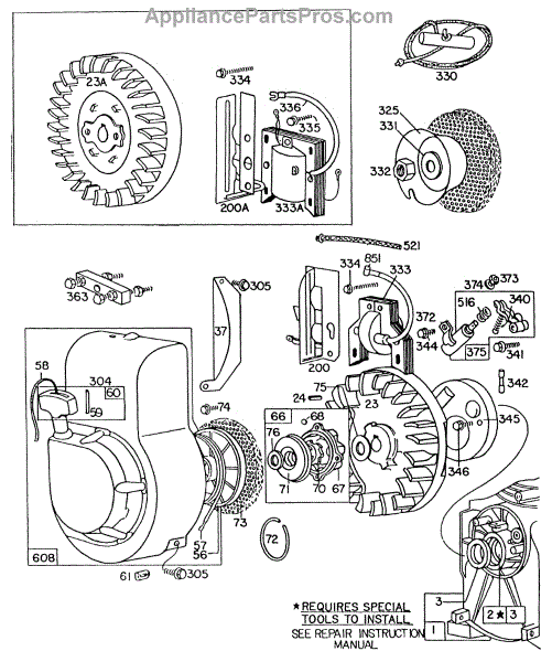 Parts for Briggs & Stratton 060412-0137-99: Blower Hsg,Flywheels,Rewind Parts