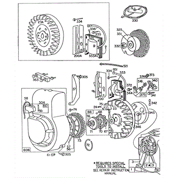 Parts for Briggs & Stratton 061331-9425-65: Blower Hsg,Flywheels,Rewind Parts