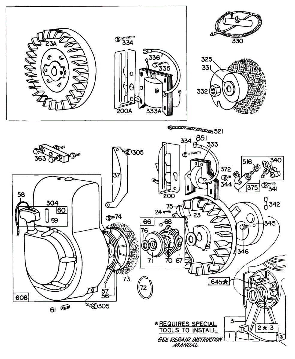 Parts for Briggs & Stratton 081132-0136-99: Blower Hsg,Flywheels,Rewind Parts