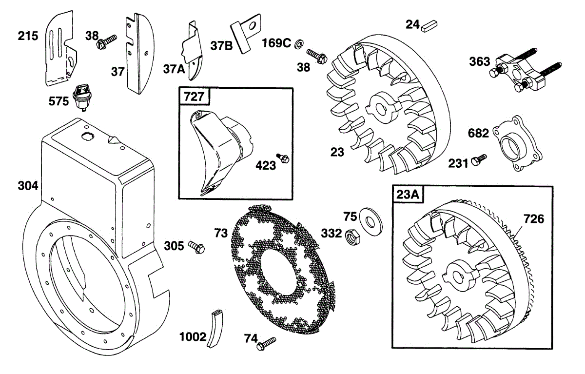 Parts for Briggs & Stratton 190432-6011-01: Blower Hsg,Flywheels,Screen Parts