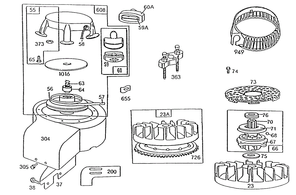 Parts for Briggs & Stratton 190707-2513-01: Blower Hsg,Flywheels,Screens Parts