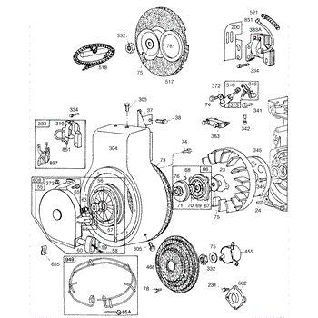 Parts for Briggs & Stratton 195431-0187-02: Blower Hsg,Flywheels,Screens Parts