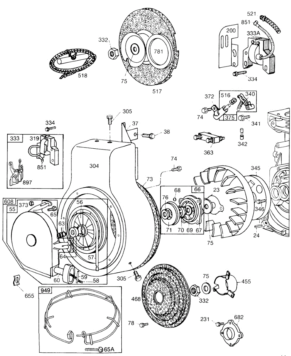 Parts for Briggs & Stratton 195432-0178-01: Blower Hsg,Flywheels,Screens Parts