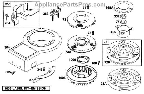 Parts for Briggs & Stratton 28A707-0116-01: Blower Hsg,Flywheels,Screens Parts