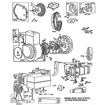 Parts for Briggs & Stratton 080332-1644-01: Blower Hsg,Fuel Tanks,Rewind Parts