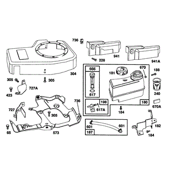 Parts for Briggs & Stratton 104772-0127-01: Blower Hsg, Fuel Tank Group Parts