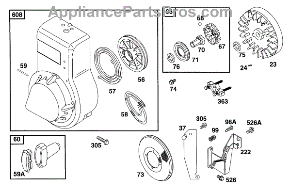 Parts for Briggs & Stratton 083412-0101-01: Blower Hsg, Rewind, Flywheel Parts