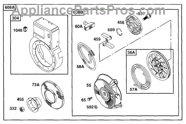 Parts for Briggs & Stratton 090102-0016-01: Blower Hsg, Rewind Assy Parts