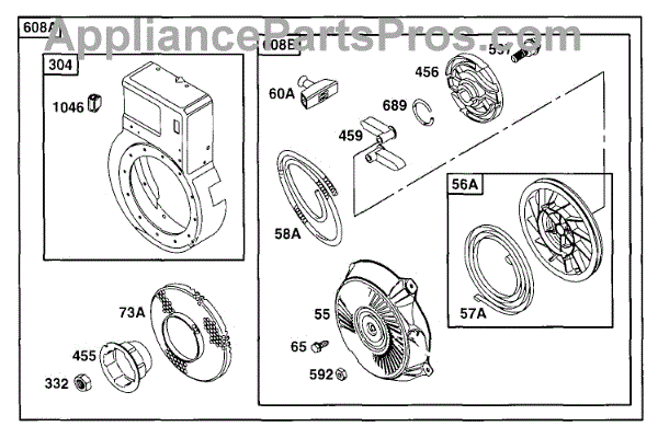 Parts for Briggs & Stratton 090252-0108-01: Blower Hsg, Rewind Assy Parts
