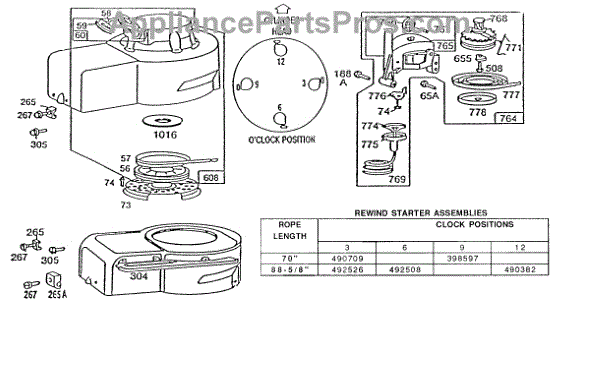 Parts for Briggs & Stratton 091707-3036-01: Blower Hsg, Rewind,Vert Pull Parts