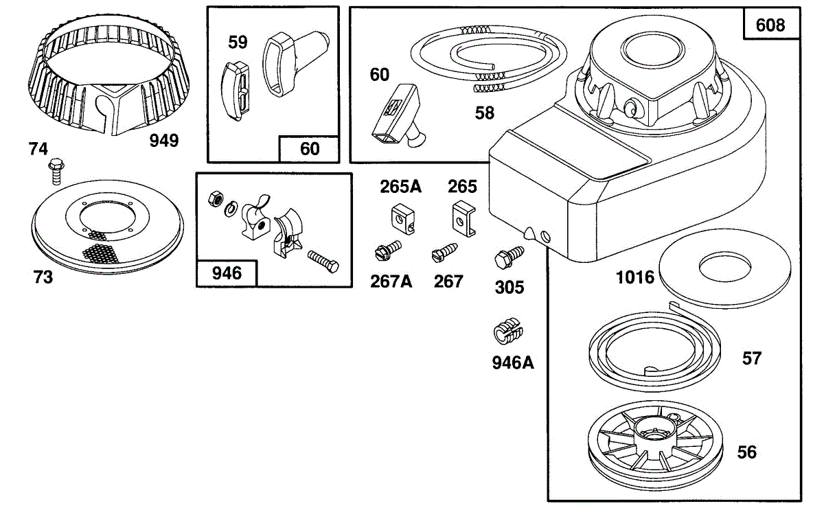 Parts for Briggs & Stratton 093902-0122-03: Blower Hsg., Rewind Assembly Parts