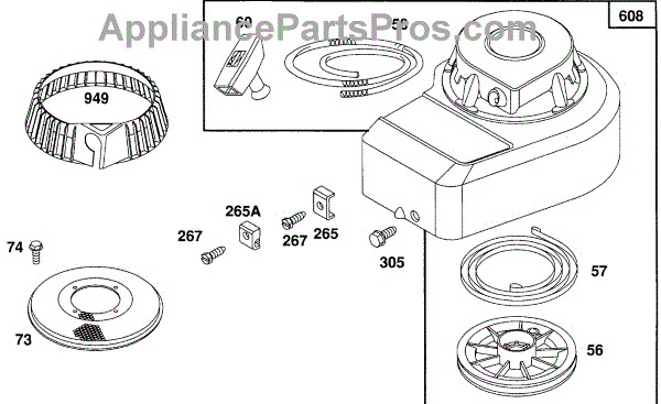 Parts for Briggs & Stratton 093902-3612-01: Blower Hsg., Rewind Assembly Parts