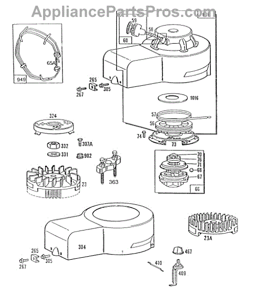 Parts for Briggs & Stratton 094908-5912-01: Blower Hsg,Rewind,Vert Pull Parts