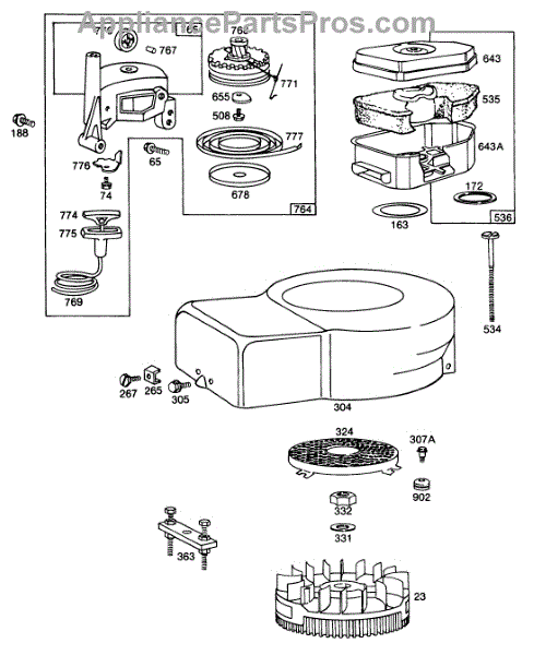 Parts for Briggs & Stratton 113908-0145-99: Blower Hsg,Rewind,Aircleaner Parts