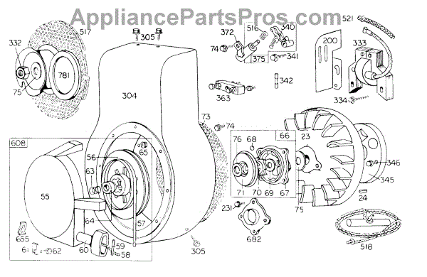 Parts for Briggs & Stratton 146432-1538-99: Blower Hsg, Rewind,Flywheel Parts