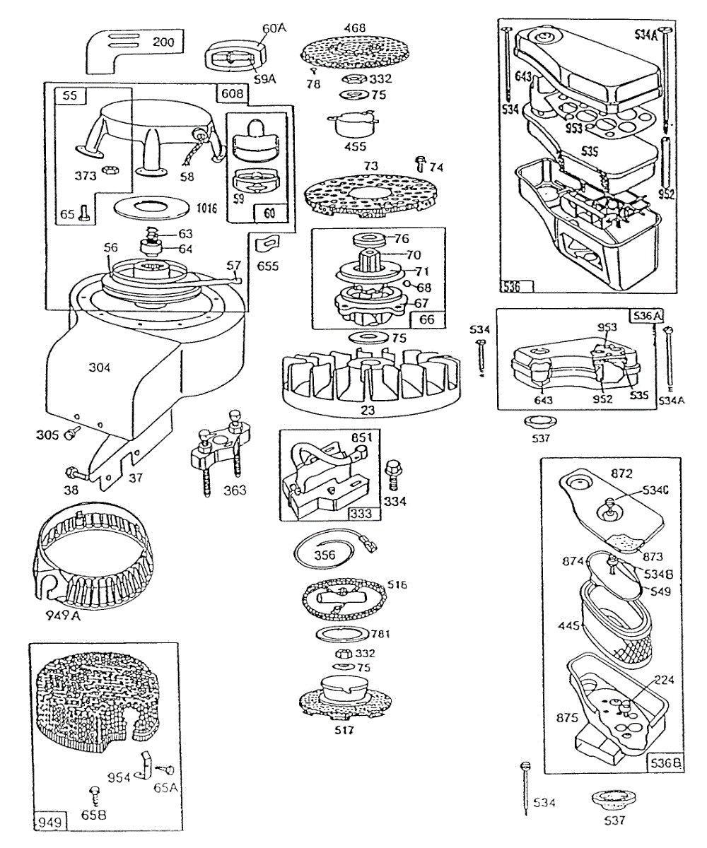 Parts for Briggs & Stratton 193707-0351-01: Blower Hsg,Rewind,A / C,Grds Parts