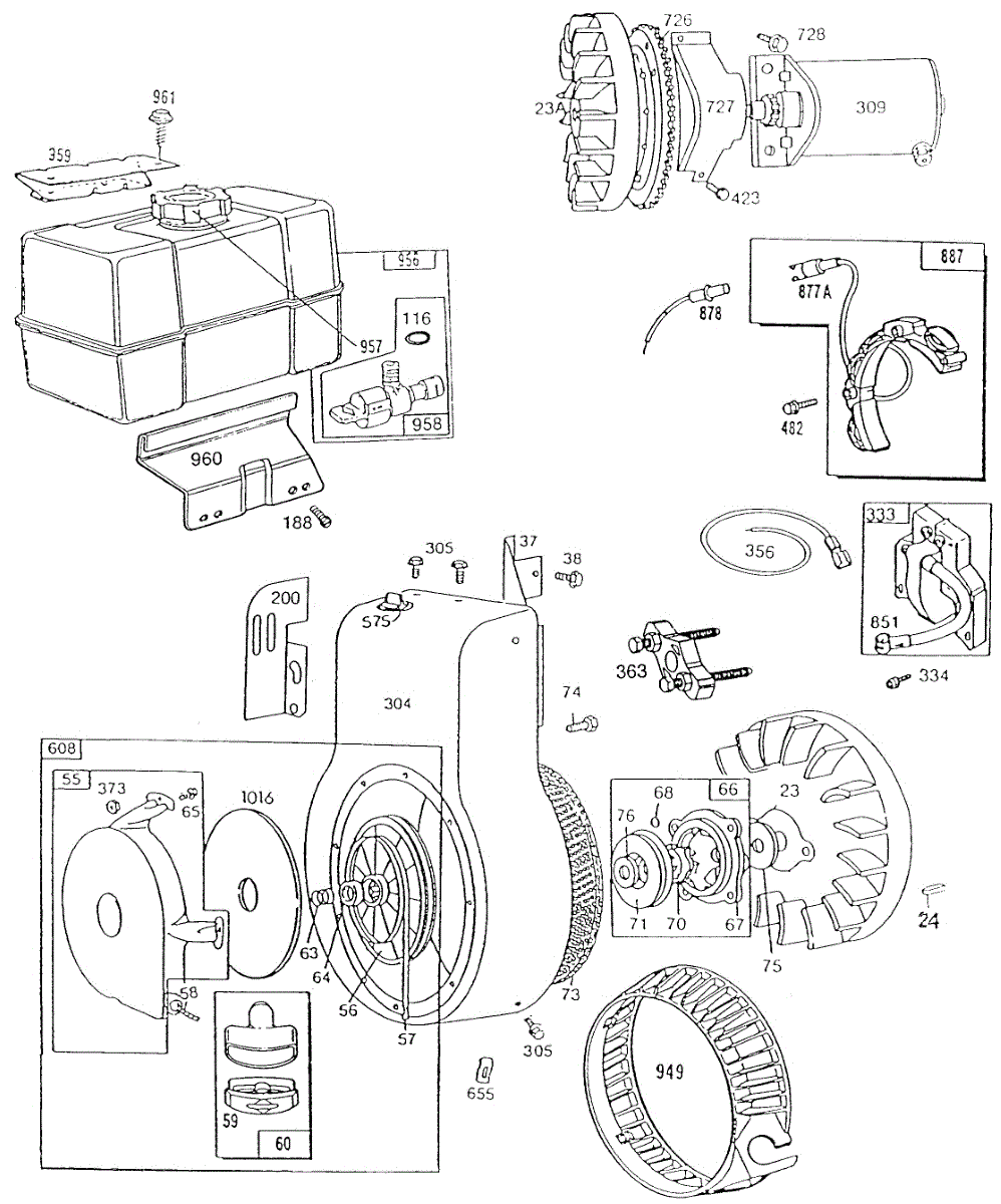 Parts for Briggs & Stratton 194415-0124-01: Blower Hsg,Rewind,Fuel Tank Parts
