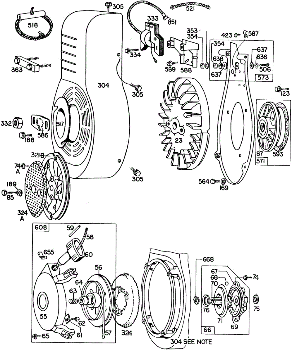 Parts for Briggs & Stratton 233431-0220-99: Blower Hsg,Rewind Assemblies Parts