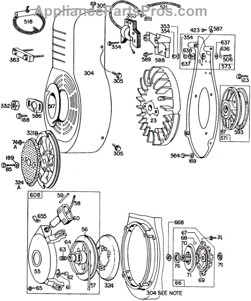 Parts for Briggs & Stratton 233431-0302-99: Blower Hsg,Rewind Assemblies Parts