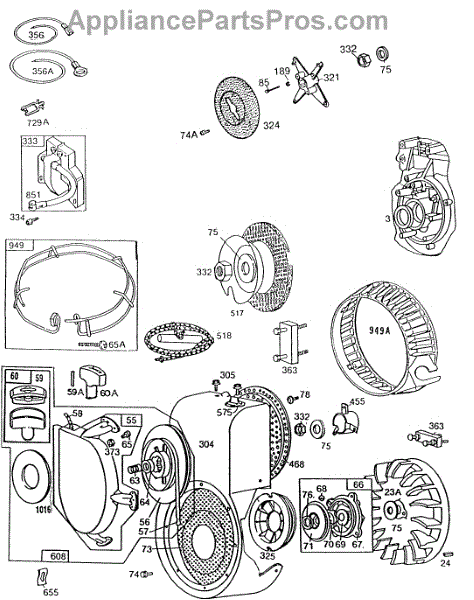 Parts for Briggs & Stratton 254427-0028-01: Blower Hsg,Rewind,Screens Parts