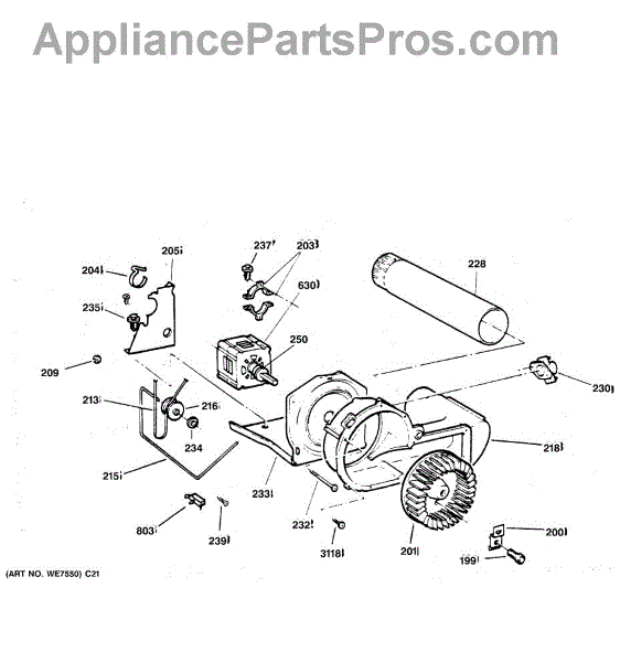 The Blower Wheel is an OEM replacement part for GE dryers. It has a role in the air circulation within the dryer, aiding in the even and efficient drying of clothes. The blower wheel, connected to the motor, helps in expelling the moist air out of the dryer through the exhaust vent during the drying cycle. Causes of a malfunctioning blower wheel are typically wear and tear from regular use, the accumulation of lint or debris, or damage to the wheel’s fins or central hub, which can impact its rotation and air circulation capability. Symptoms of a bad Blower Wheel include: