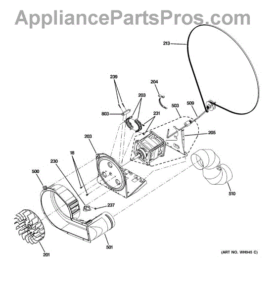 • Spins with the motor to move air through the drum, lint screen, and exhaust duct