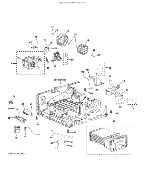 This blower wheel circulates air across the condenser to help dissipate heat and maintain proper cooling performance. Replacing a worn or damaged wheel restores airflow and reduces noise or overheating issues. What it does: