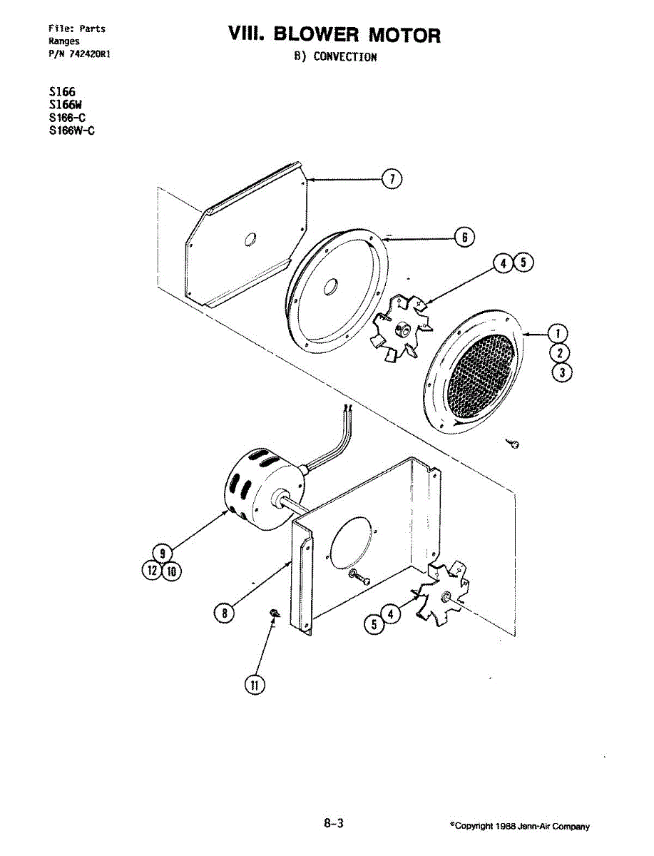 Parts for Jenn-Air S166W-C: 03 - Blower Motor (Convection) Parts