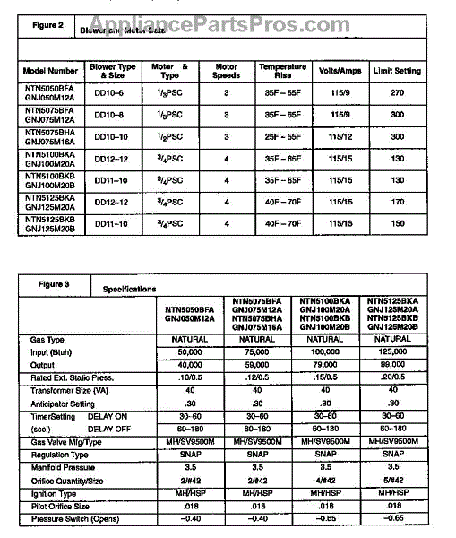 Parts for Icp NTN5050BFA1: Blower And Motor Data Parts