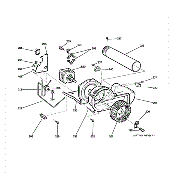 The Blower Wheel is an OEM replacement part for GE dryers. It has a role in the air circulation within the dryer, aiding in the even and efficient drying of clothes. The blower wheel, connected to the motor, helps in expelling the moist air out of the dryer through the exhaust vent during the drying cycle. Causes of a malfunctioning blower wheel are typically wear and tear from regular use, the accumulation of lint or debris, or damage to the wheel’s fins or central hub, which can impact its rotation and air circulation capability. Symptoms of a bad Blower Wheel include: