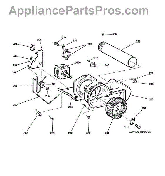 The Blower Wheel is an OEM replacement part for GE dryers. It has a role in the air circulation within the dryer, aiding in the even and efficient drying of clothes. The blower wheel, connected to the motor, helps in expelling the moist air out of the dryer through the exhaust vent during the drying cycle. Causes of a malfunctioning blower wheel are typically wear and tear from regular use, the accumulation of lint or debris, or damage to the wheel’s fins or central hub, which can impact its rotation and air circulation capability. Symptoms of a bad Blower Wheel include: