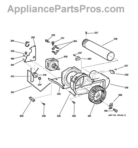 The Blower Wheel is an OEM replacement part for GE dryers. It has a role in the air circulation within the dryer, aiding in the even and efficient drying of clothes. The blower wheel, connected to the motor, helps in expelling the moist air out of the dryer through the exhaust vent during the drying cycle.