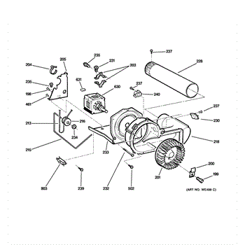 The Blower Wheel is an OEM replacement part for GE dryers. It has a role in the air circulation within the dryer, aiding in the even and efficient drying of clothes. The blower wheel, connected to the motor, helps in expelling the moist air out of the dryer through the exhaust vent during the drying cycle. Causes of a malfunctioning blower wheel are typically wear and tear from regular use, the accumulation of lint or debris, or damage to the wheel’s fins or central hub, which can impact its rotation and air circulation capability. Symptoms of a bad Blower Wheel include:
