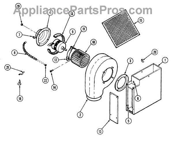 This blower wheel mounts on the drive motor and pushes air through the dryer drum and out the exhaust. Replacing a worn wheel restores proper airflow for consistent drying and helps prevent overheating and nuisance shutdowns. What it does: