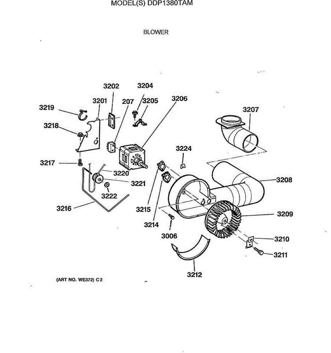 Dryer drive belt wraps around drum, idler pulley, and motor to rotate clothes during drying. Replace if belt is worn, frayed, or broken. Verify fit with model.
