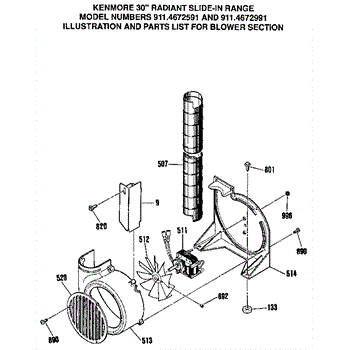 Parts for Kenmore 911.4672991 (9114672991, 911 4672991): Blower Parts
