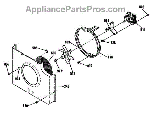 • Spins on the motor shaft to move air through the appliance's cabinet or evaporator area.