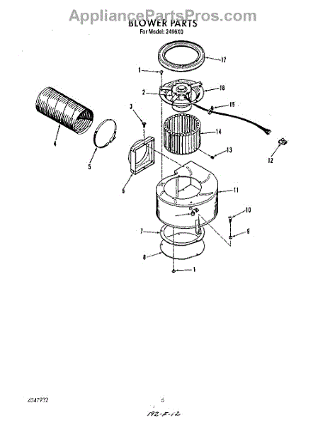 Parts for Whirlpool 2496^0A: 04 - Blower Parts