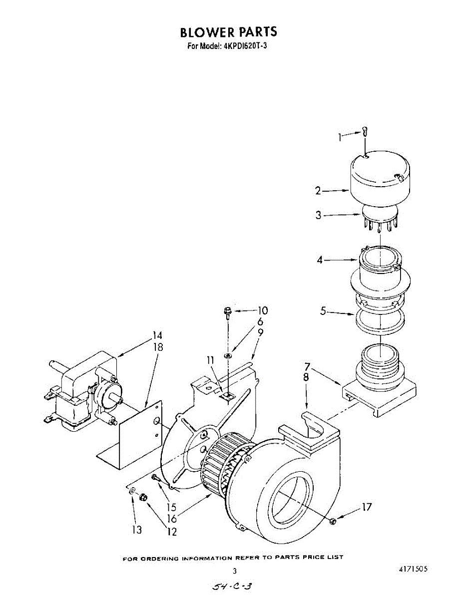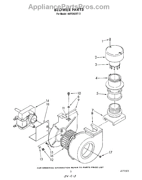 Parts for Whirlpool 4KPDI620T3: 03 - Blower Parts