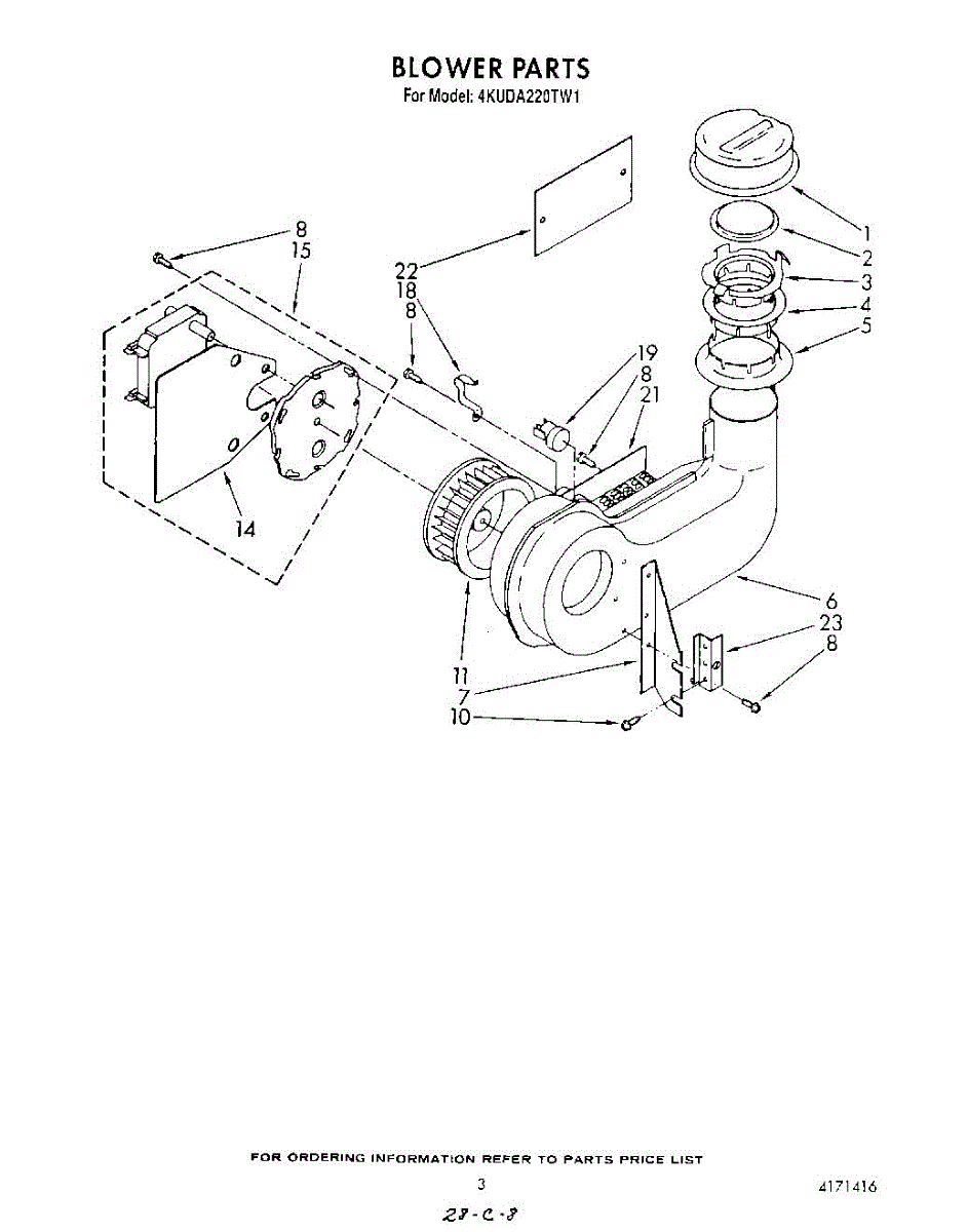 Parts for Whirlpool 4KUDA220TW1: 03 - Blower Parts