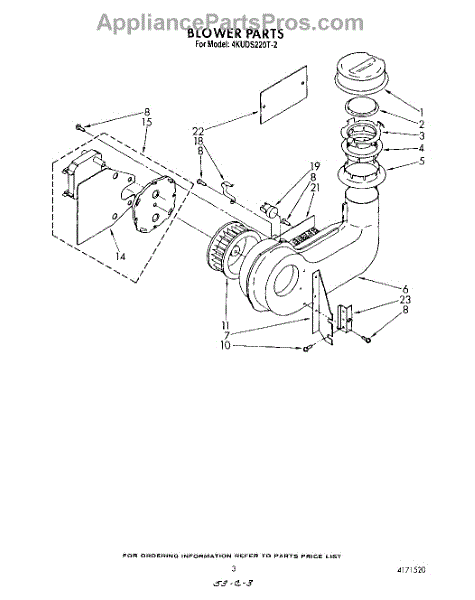 Parts for Whirlpool 4KUDS220T2: 03 - Blower Parts